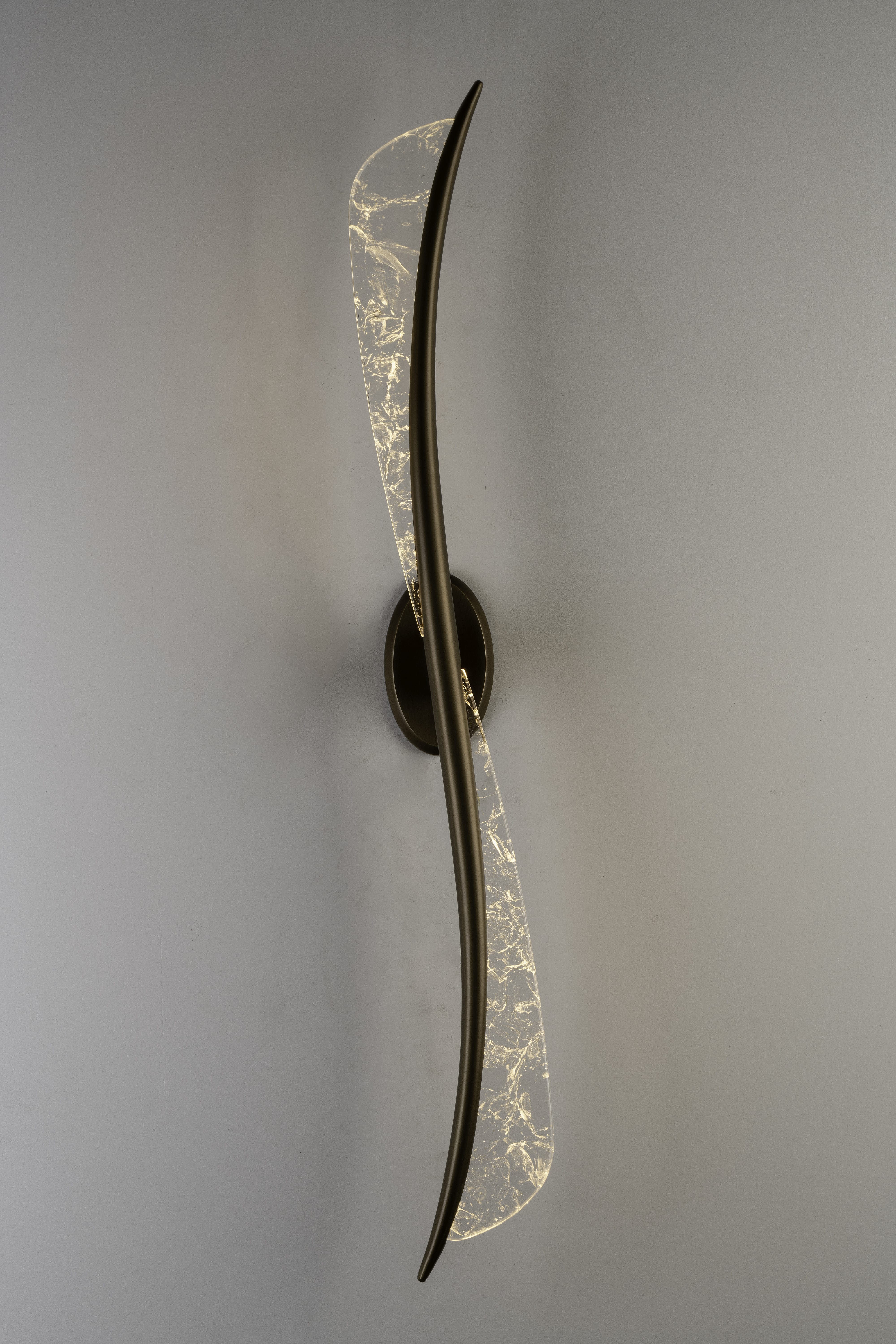 Elegant, simple and yet sophisticated. Avena Wall Light delicately accentuates the space by casting soft light on the wall. The beautiful combination of the materials – a brass ‘stem’ and artisanal glass imitating the shape and texture of droplets – makes this lighting fixture appear solid and fragile at the same time.